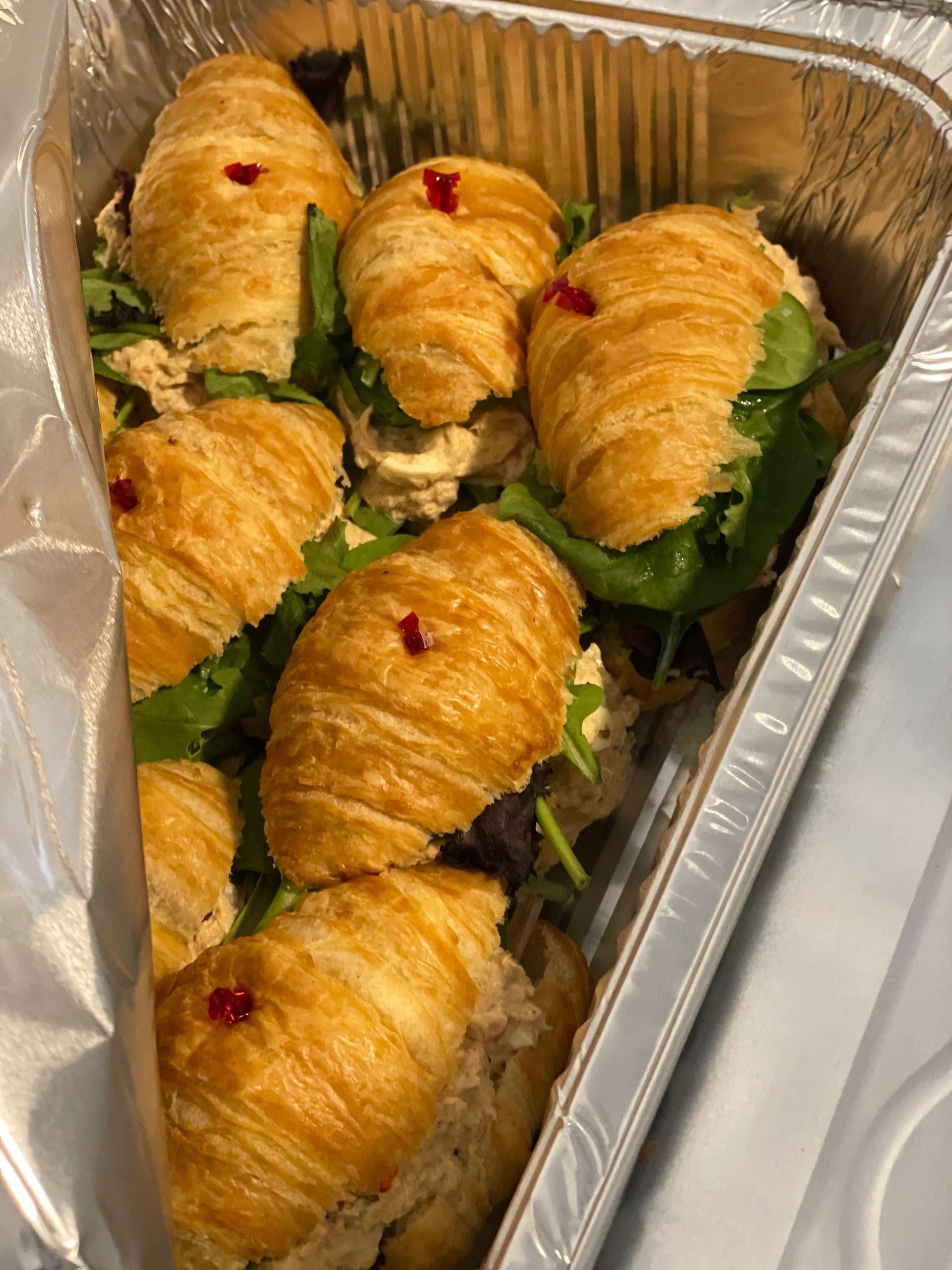 Homemade delicious chicken salad, sandwiched in between flaky and buttery croissants. Serves 12-15 people